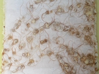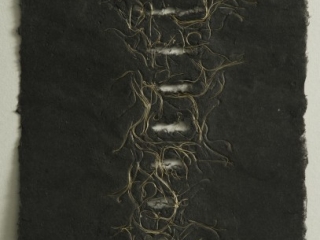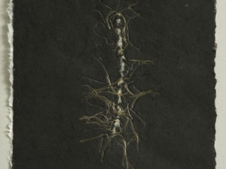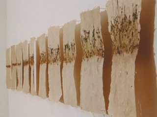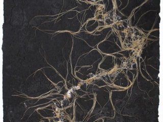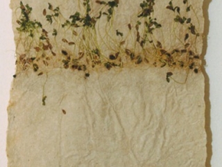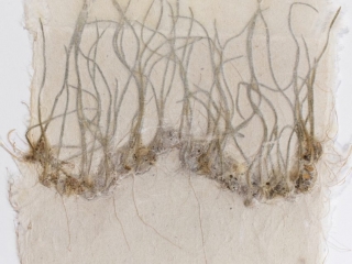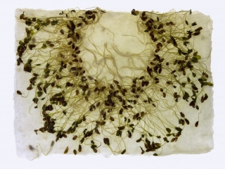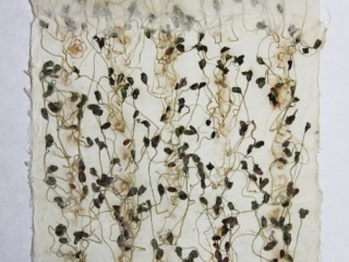 Drawing Roots is composed of 2D and 3D pieces out of handmade paper combined with the process of hydroponics. I have pioneered a technique of germinating seeds in handmade paper. Drying the paper out and pressing the sprouts into the paper captures a form of mark making that produces an improvisational set of drawings representative of a moment caught in time and the intricacies of maintaining sustainable living practices within an environment that has been irrevocably altered by human industrialism.