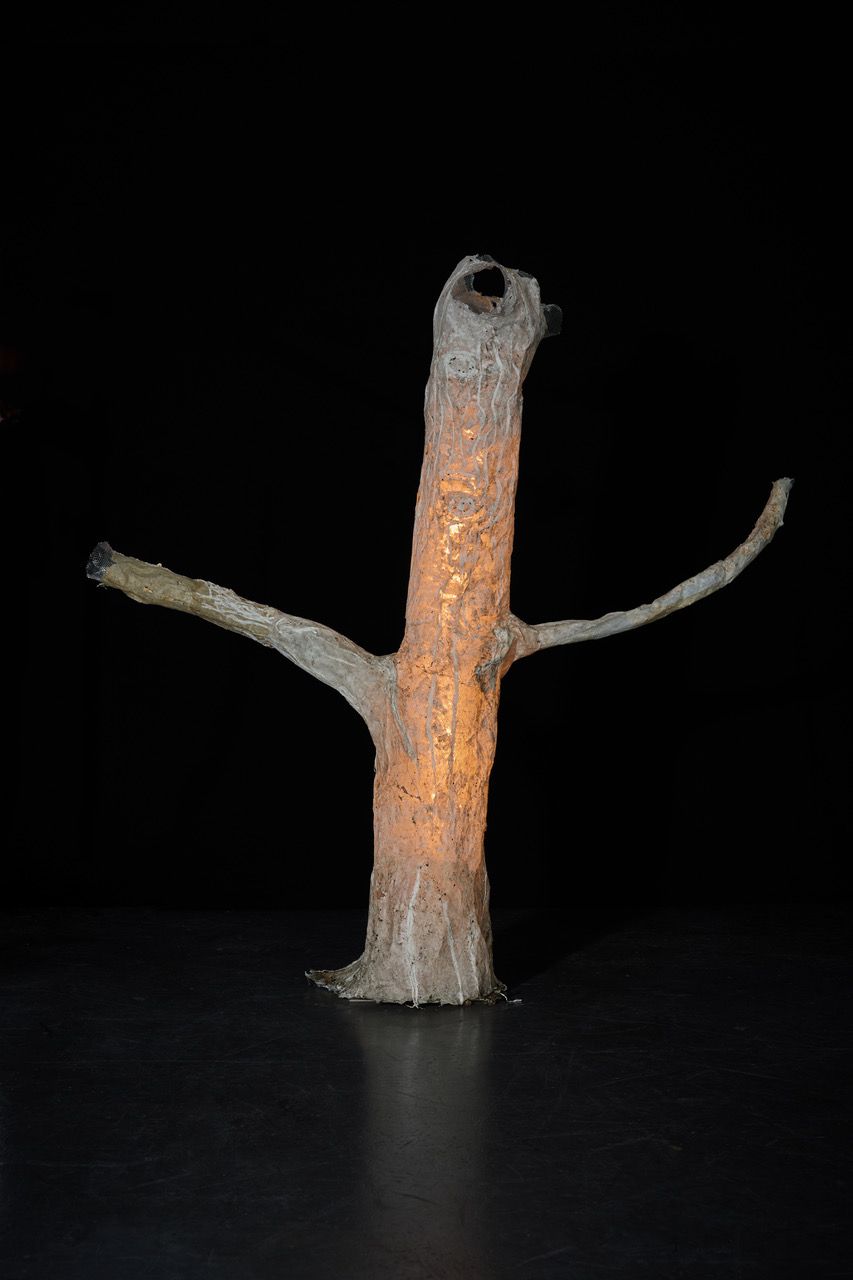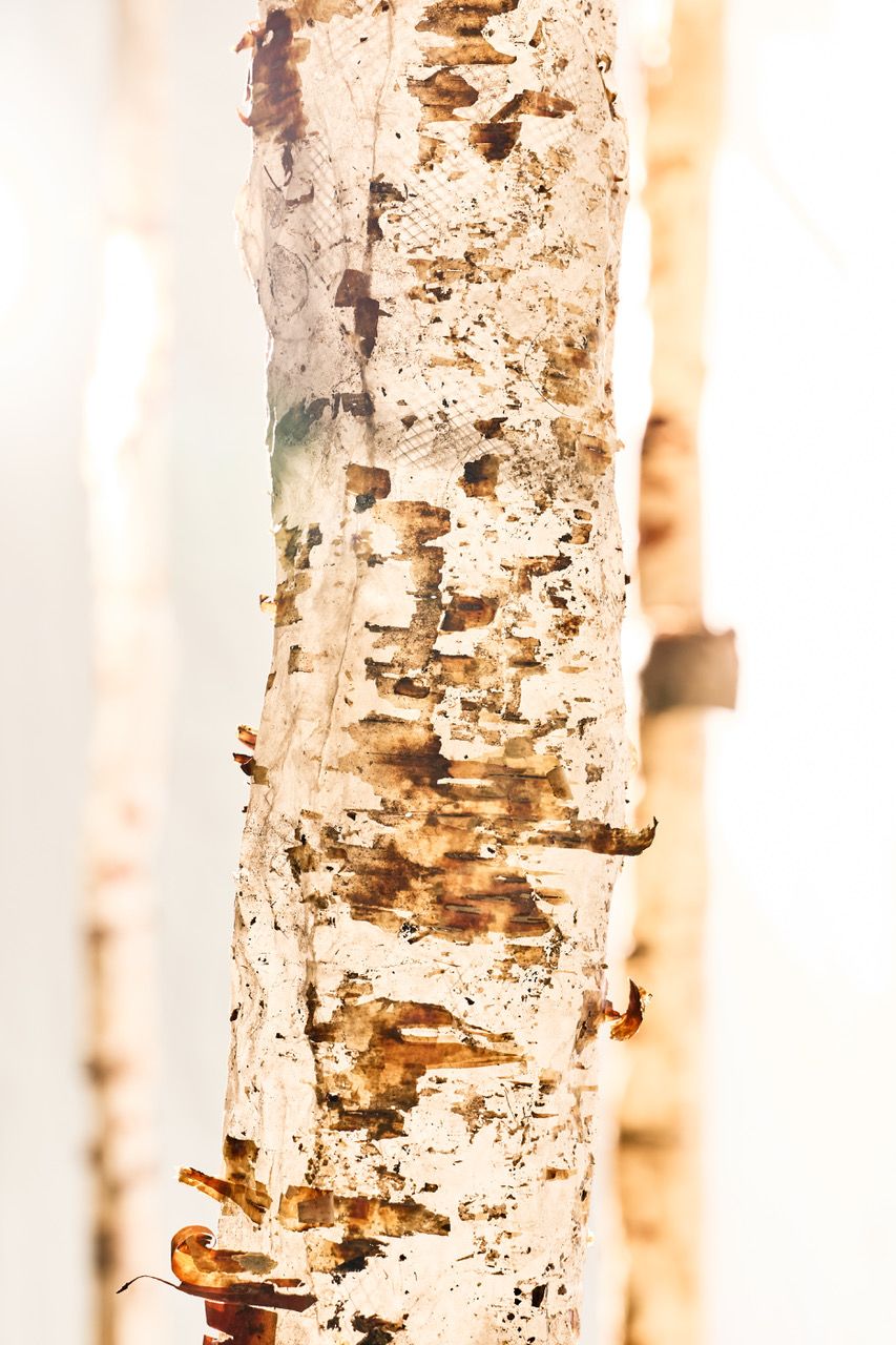 Ghosting brings lost, dead or dying trees back to life by casting them with paper pulp re-generated from their harvested fruits, or the inner bark of non-native species such as abaca and kozo to re-animate their presence. This series highlights memorializing lost native organisms such as the American chestnut with papers from other countries to imbue the possibilities of co-existence. The series includes recreating the essence of lost tree trunks from the fruit they bore to better understand disrupted supply chains.